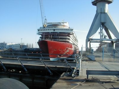 Here are some pictures of Crystal Serenity,first one from April 8 showing the white paint showing and second one was from being in drydock back in February and those are the pics!