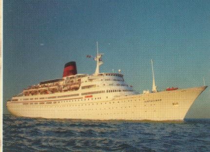 Nice photos Rob, but personally I prefer the old gray hull of the ship as Vistafjord.Caronia will leave the Cunard fleet during Fall 2004. She should join Saga Cruises...Caronia appears in their summer 2004 cruise brochure in a brief report....claiming " new ship for Saga " ( I have obtained this brochure from my grandmother...I'm too young to cruise with Saga.... ).Now Saga Cruises is for sale so I ignore if the acquisition of the Caronia will be confirmed.