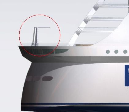 At SeaTrade I specifically met with P.R. reps from Aker Finnyards to ask about this object or device. They both asked me why I wanted to know, and I said that a number of us ship buffs were simply speculating about it. Their answer to me: "Well, you'll just have to speculate for 3 more years about it."