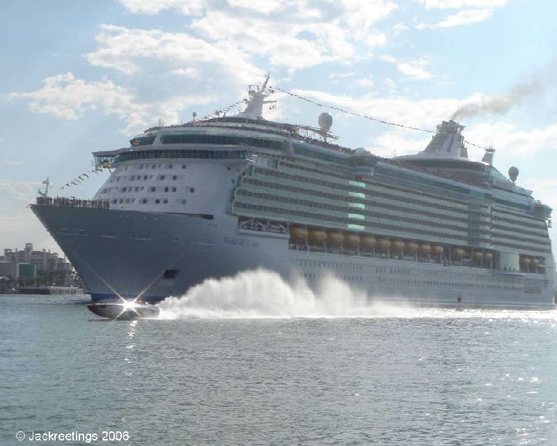 I think I might have seen you chasing the FREEDOM! Our Miami departure was too much fun. There was also a very fast cigarette boat chasing us up and down the channel and one of the passengers kept mooning us! Too funny.