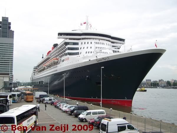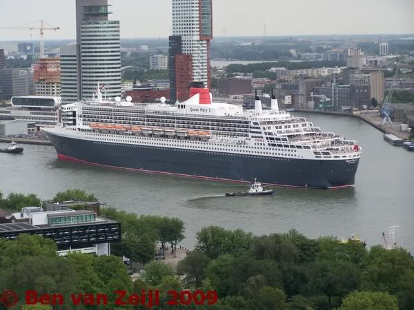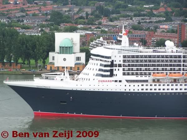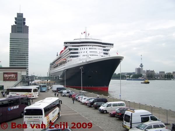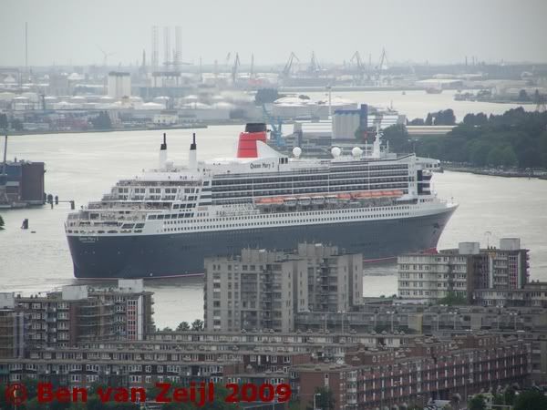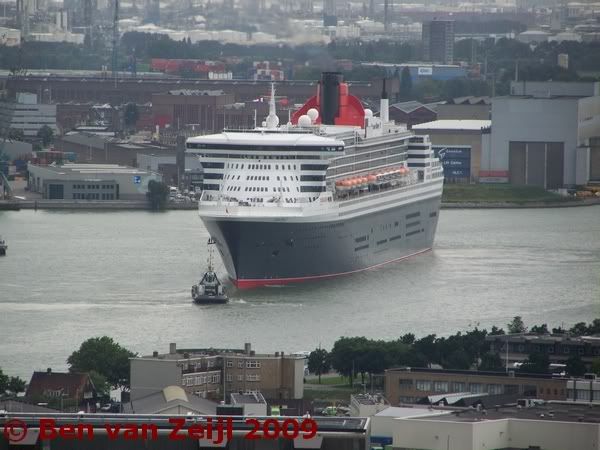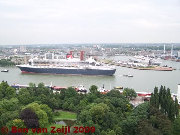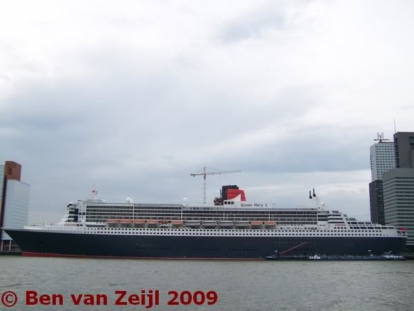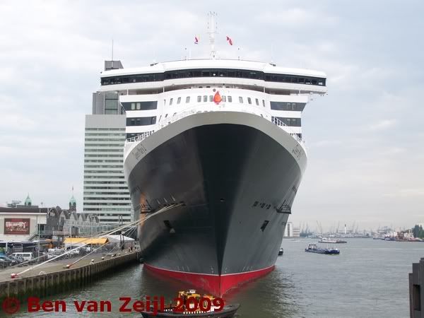 Precisely 8 o clock Queen Mary 2 arrived at Rotterdam. Bow first she made a wonderful impression. Here are some pictures of here arrival this morning.