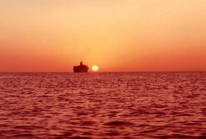 quote:Originally posted by Linerrich:Here's a sunset photo I snapped from a moving tender going back to TROPICALE off Grand Cayman in February, 1982. The MERMOZ had just set sail into the setting sun: