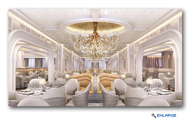 Consumers and travel advisors can expect to be wowed by the dramatic and glamorous public spaces such as The Grand Dining Room, which soars almost two decks in height and pays homage to the "beautiful age" of early 20th-century Parisian society through its contemporary interpretation of Belle Époque.