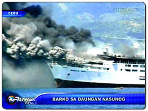 Dr. Emmanuel Labella, Bureau of Quarantine chief, said the vessel's bridge and upper were totally burned.
