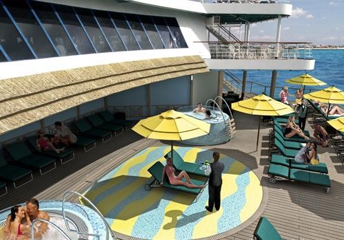 The “Serenity” areas will be located in a secluded aft section of the ship that provides for spectacular ocean vistas. The stunning new design will feature plush chaise lounges and chairs. Colorful oversized umbrellas and a separate relaxation area will also provide the opportunity for guests to enjoy this new area in shaded comfort. Two whirlpools will be available to offer the ultimate relaxing escape.