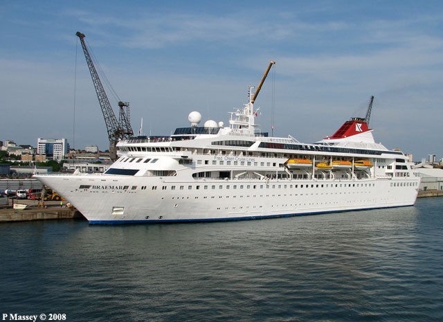 The Fred Olsen Cruise ship mv ' Braemar ' sailed from Southampton on Sunday to the Blohm & Voss shipyard in Germany to have a midships section added.
