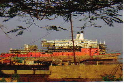 The ship has pretty much disappeared by now--this photo was taken of her at Alang in Feb. 2006: