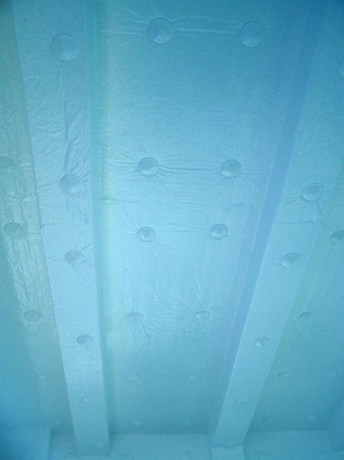 quote:Originally posted by Magic Pipe:Those are not rivets. What you are actually looking at is insulation, not bare steel. The "rivets" are fasteners for attaching the insulation to the steel deck.